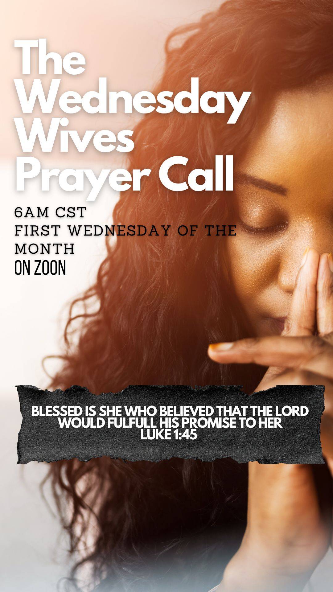 This call is a space for prayer, prophecy, prayer requests, and the sharing of testimonies, as we come together to bombard heaven on behalf of our families as wives.